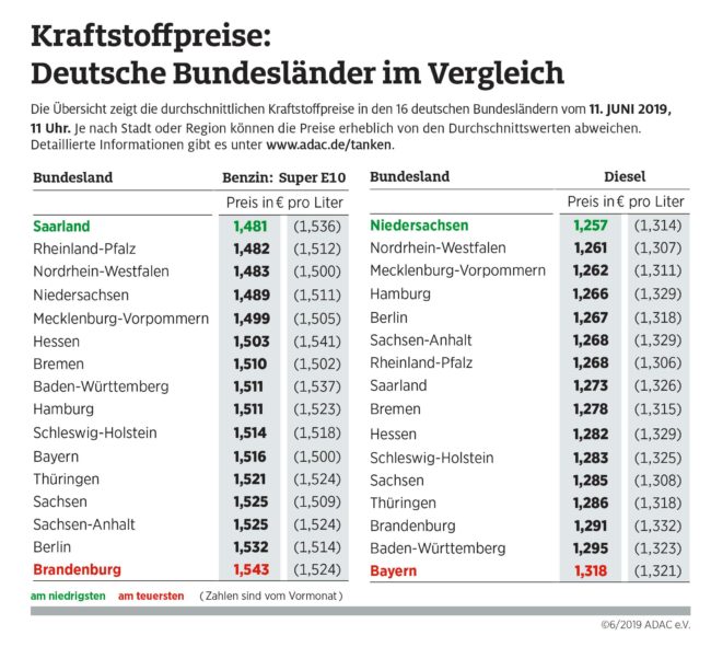 Saarländer und Niedersachsen tanken günstig Preisunterschiede zwischen den Bundesländern bei sechs Cent