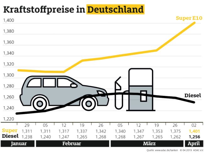 Benzin deutlich teurer, Diesel etwas günstiger – Preisdifferenz je Liter vergrößert sich auf über 14 Cent