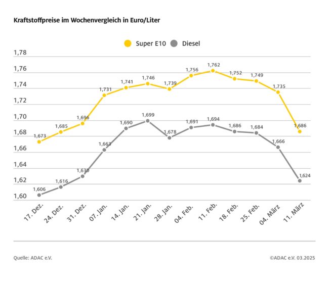 Tanken im Februar teurer als im Vormonat – ADAC: Widersprüchliche Preisentwicklung an den Zapfsäulen angesichts niedrigerer Rohölnotierungen