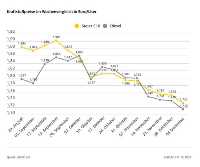 ADAC: Tanken im November erneut günstiger – Benzin 4,4 Cent billiger als im Oktober, Diesel 5,9 Cent – 2023 wird dennoch zweitteuerstes Tankjahr aller Zeiten