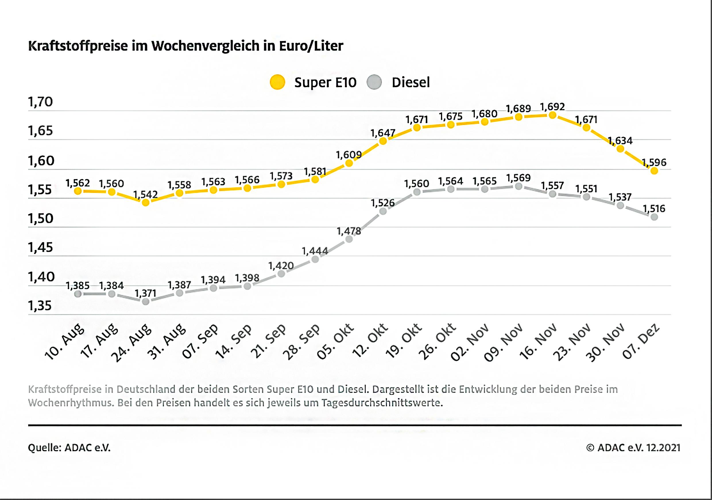 Kraftstoffpreise im Wochenvergleich Bildquelle: ADAC e.V.