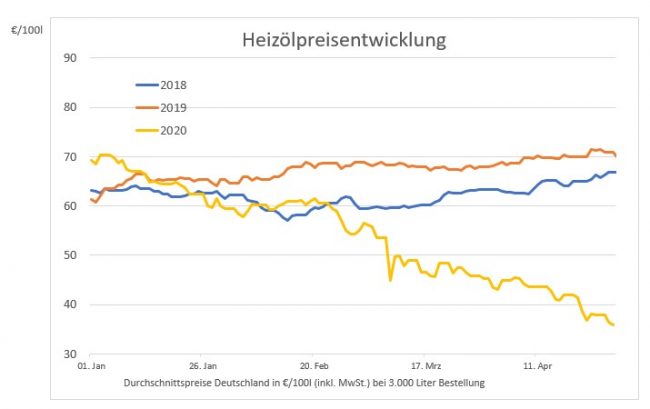 Seit Monaten hat das Coronavirus die Welt fest im Griff. Fast ebenso lange schon fallen auch die Ölpreise auf der ganzen Welt. Auch auf die Heizölpreise im Inland hat das entsprechende Auswirkungen und so ist der Heizölpreis seit Anfang März um insgesamt 34 Prozent gefallen, seit Anfang des Jahres sogar um fast 48 Prozent. …