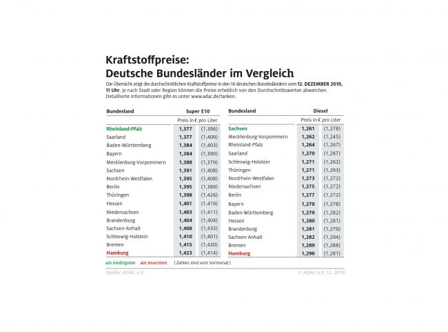 München (ots) Autofahrer, die Benzin benötigen, tanken derzeit in Südwestdeutschland am günstigsten. Laut aktuellem Bundesländervergleich kostet ein Liter Super E10 in Rheinland-Pfalz und im Saarland durchschnittlich 1,377 Euro, das sind 4,6 Cent weniger als in Hamburg, wo man im Mittel 1,423 Euro bezahlen muss. Etwas anders zeigt sich das Bild bei Diesel: Mit durchschnittlich 1,261 Euro…