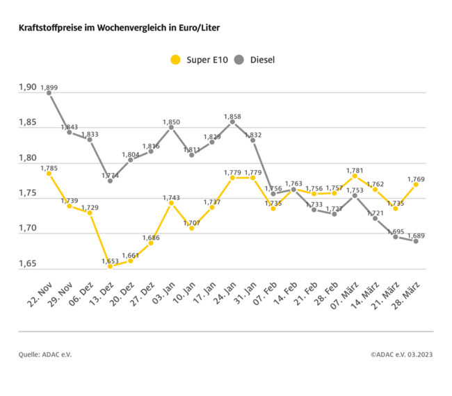 ADAC: Benzinpreis steigt spürbar – Anstieg nach höheren Rohölnotierungen – Differenz zwischen Benzin- und Dieselpreis auf fast elf Cent gewachsen