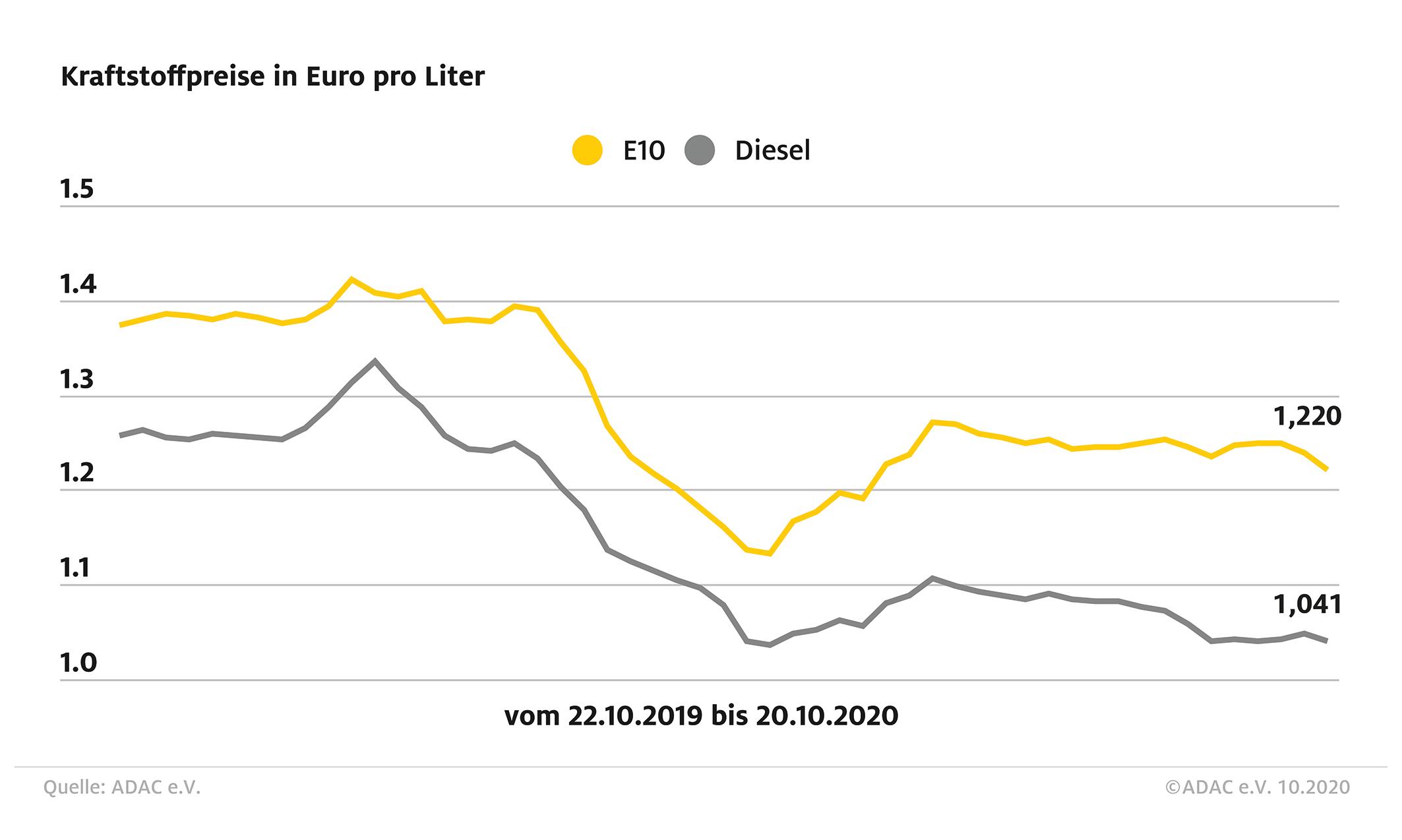 Auch beim Diesel ist in dieser Woche eine Verbilligung zu verzeichnen. Für einen Liter werden hier an den Zapfsäulen im bundesweiten Mittel 1,041 Euro fällig. Somit gibt es auch beim Diesel in dieser Woche einen Rückgang von 0,8 Cent im Vergleich zur vorherigen Woche. Die erhöhte Nachfrage nach Heizöl zur kälteren Jahreszeit hat einen Einfluss auf die Entwicklung des Dieselpreises.